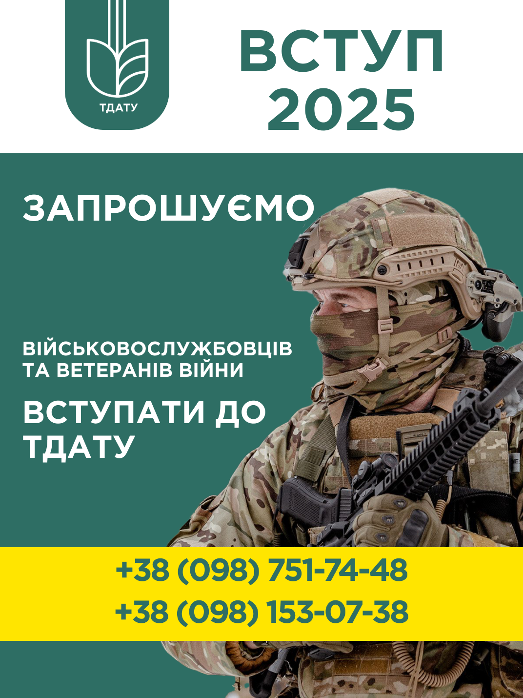🇺🇦ТДАТУ запрошує військовослужбовців та ветеранів війни здобути вищу освіту за освітніми рівнями бакалавра та магістра