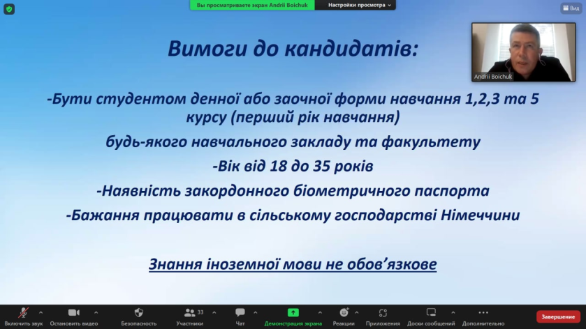 Протягом зустрічі було презентовано 4 програми стажування для студентів аграрного профілю у Німеччині та Швейцарії.