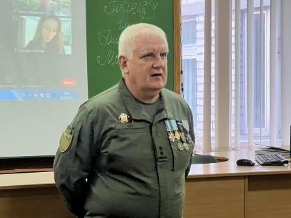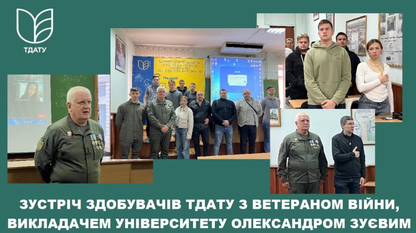 До дня захисників і захисниць України у Таврійському державному агротехнологічному університеті імені Дмитра Моторного було проведено патріотично-виховний захід, на якому здобувачі вищої освіти зустрілися з ветераном війни, підполковником запасу Олександром Зуєвим, який з 2014 року боронив кордони України.