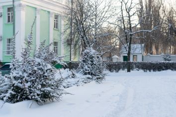 Територія Університету, одягнена у біле вбрання, стала неймовірна красива.